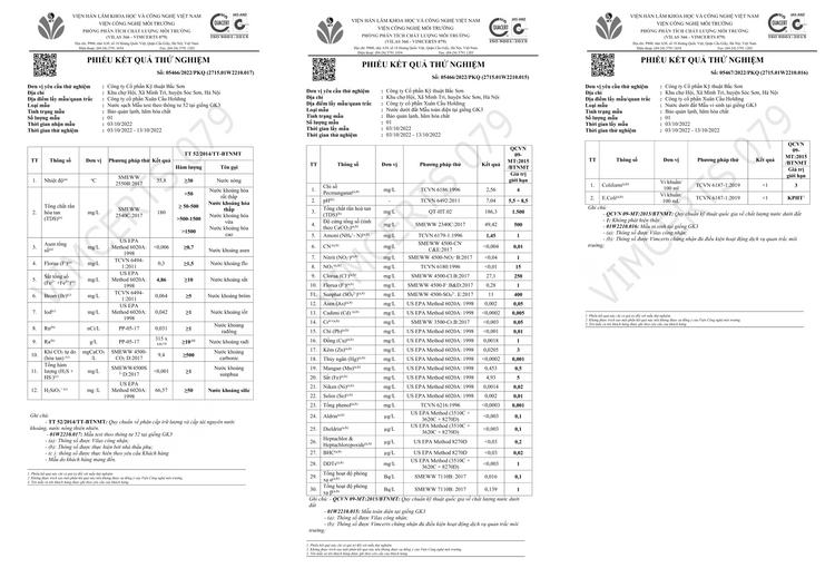 Sức hấp dẫn của mạch khoáng tại Alluvia City không chỉ dừng lại ở hồ sơ pháp lý mà còn nằm ở những chỉ số "vàng" về thành phần được kiểm định nghiêm ngặt. Kết quả phân tích từ giếng khoan sâu hơn 400m cho thấy hàm lượng axit silic (H₂SiO₃+) đạt mức 66,57 mg/l, vượt qua tiêu chuẩn định danh nước khoáng của Việt Nam và Nhật Bản (50 mg/l).