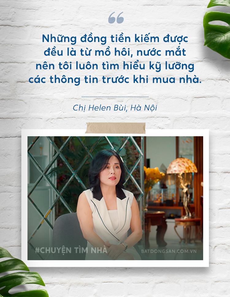 Lương giáo viên eo hẹp, chị Helen phải làm thêm nhiều công việc và phải đến năm 45 tuổi, chị mới tích lũy được một khoản tiền đủ lớn để có thể tự tin đi tìm một ngôi nhà đúng nghĩa. "Cầm món tiền lớn ấy trong tay tôi vừa mừng vừa lo vì không biết phải bắt đầu từ đâu. Tôi cũng đã thử hỏi ý kiến của những người quen, tìm đến môi giới bất động sản, nhưng mỗi nơi lại tư vấn một kiểu, giá cả không rõ ràng, có khi chênh nhau đến cả vài trăm triệu đồng! Cùng lúc đó, nghe những câu chuyện về lừa đảo mua nhà, chủ đất chiếm cọc, hay lừa người khác mua nhà trong diện quy hoạch khiến tôi cũng lo lắng hơn", chị kể.