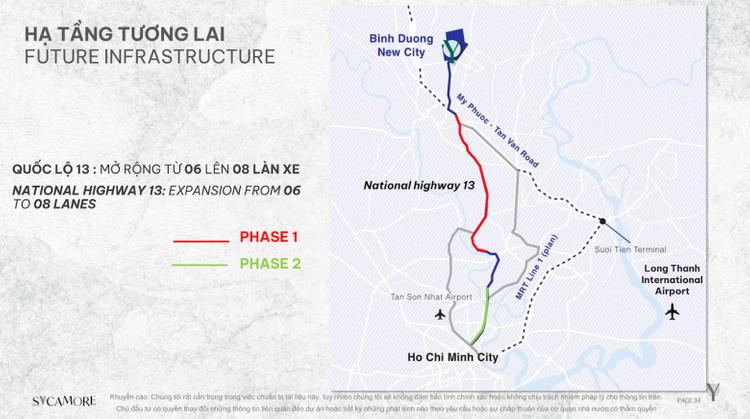 Sycamore Bình Dương được hưởng lợi từ việc nằm gần các tuyến đường lớn như Quốc lộ 13, đường DT 741 và đường Vành Đai 4, tạo điều kiện thuận lợi cho việc di chuyển giữa các khu vực lân cận. Điều này không chỉ giúp tiết kiệm thời gian di chuyển mà còn tạo điều kiện cho việc kinh doanh và đầu tư sinh lời lâu dài.