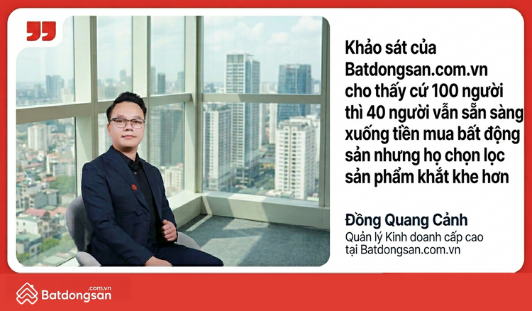 Trong bối cảnh đó, tâm lý thị trường đang phản ánh rõ sự chuyển dịch. Theo khảo sát của Batdongsan.com.vn, 60% người tham gia cho biết đang thận trọng trước các biến động vĩ mô, nhưng vẫn có 40% sẵn sàng xuống tiền nếu tìm được sản phẩm phù hợp.