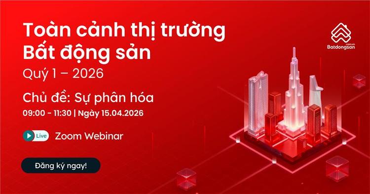 THÔNG TIN SỰ KIỆN Toàn cảnh Thị trường Bất động sản Quý 1/2026 sẽ được tổ chức Online qua Zoom Webinar vào lúc 09:00 – 11: 30 ngày 15/04/2026. Đăng ký tham gia miễn phí TẠI ĐÂY.