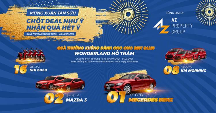 Với hơn 9 tỷ đồng gồm các phần thưởng giá trị cao như: Ô tô Mercedes-Benz C- Class, ô tô Mazda 3, ô tô Kia Morning, xe máy Honda SHi 2020,… thể hiện sự hỗ trợ mạnh mẽ từ AZ Property Group đối với sự hợp tác của các đại lý phân phối dự án trong giai đoạn đang khan hiếm sản phẩm tốt. Các giải thưởng thi đua này sẽ dành cho những cá nhân có thành tích bán hàng xuất sắc nhất trong đợt bán hàng từ 01/01/2021 đến hết ngày ngày 31/03/2021 của AZ Property Group.