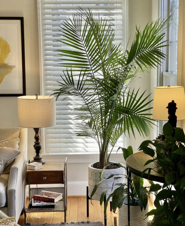 Cây cau cọ còn có tên gọi khác là cau vàng, thường được trồng trong chậu làm cảnh nội thất, trang trí nhà, trang trí văn phòng… hoặc làm cây ngoại cảnh. Cau vàng ra hoa theo cụm, màu trắng sữa và có hương thơm dịu nhẹ. Mỗi cây cau vàng khi trồng trong nhà có thể đạt tới mức phát triển bình với chiều cao lên tới 3m. Cau cọ đôi khi đòi hỏi môi trường sống cao cấp, cần đảm bảo cân bằng giữa ánh sáng, nhiệt và sự thụ phấn.