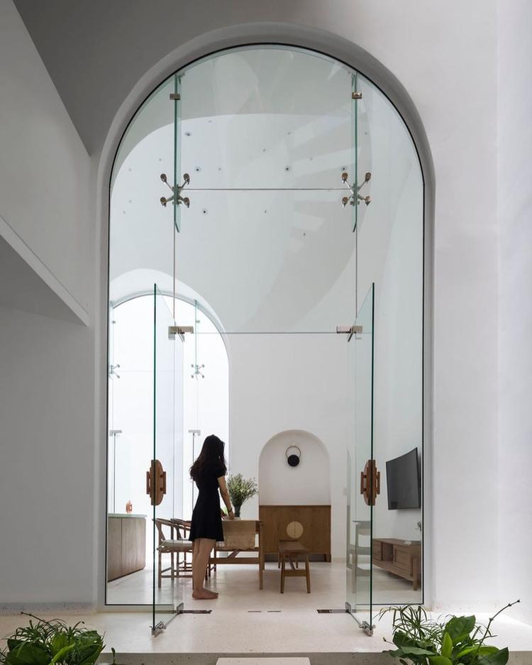 Cửa kính hình tròn gắn kết không gian trong và ngoài