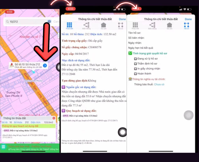 Bước 04: Kiểm tra thông tin do app cung cấp (lưu ý về số tờ, số thửa đất và người sở hữu).