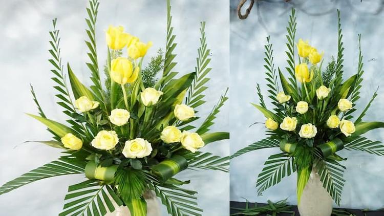 Cách cắm hoa bàn thờ ngày Tết: Khi cắm hoa, bạn cần chú ý độ cao thấp, để làm sao cho bình hoa được tự nhiên nhất, mang lại tính thẩm mỹ cũng như sự trang nghiêm nơi bàn thờ, tỏ lòng biết ơn dâng lên bề trên.