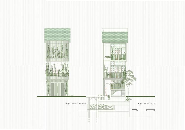 Mặt vẽ mặt đứng phía trước và sau ngôi nhà