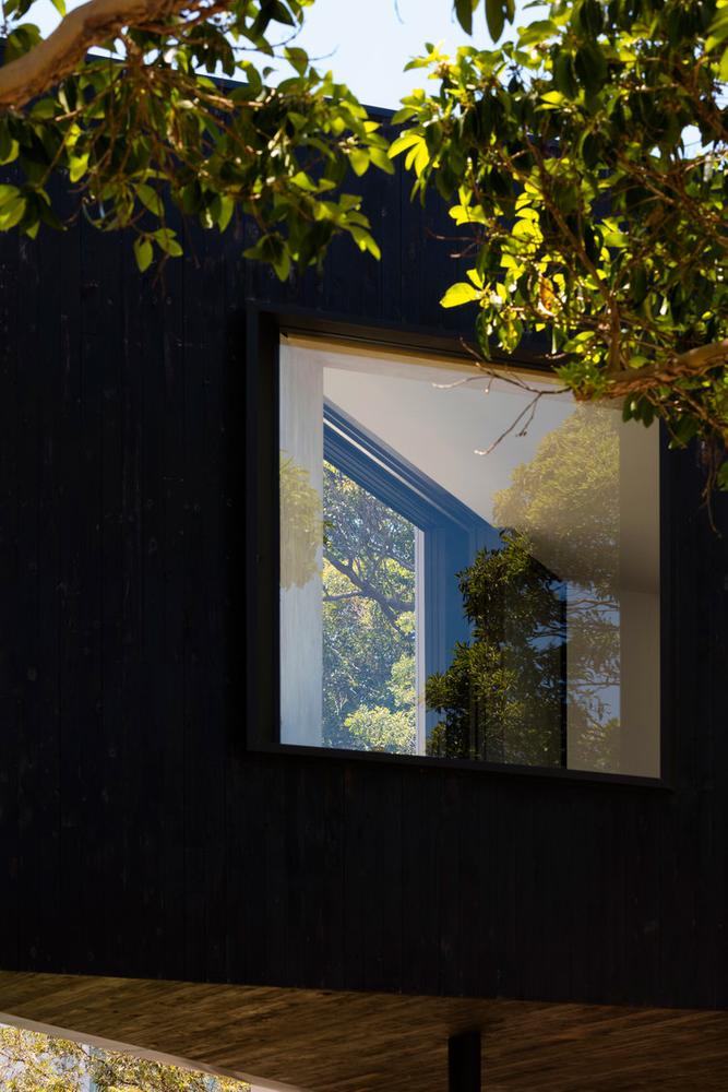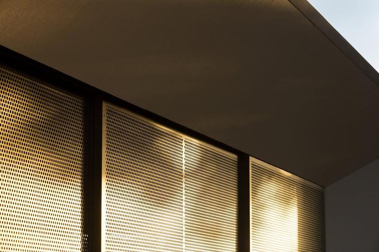 Nhằm tăng cường sự riêng tư, khối nhà mới được bao bọc một phần bằng các tấm kim loại đột lỗ. Tấm chắn này cũng có tác dụng bảo vệ ngôi nhà khỏi cái nắng mặt trời gay gắt trong khi vẫn cho phép ánh sáng tự nhiên đi vào bên trong.