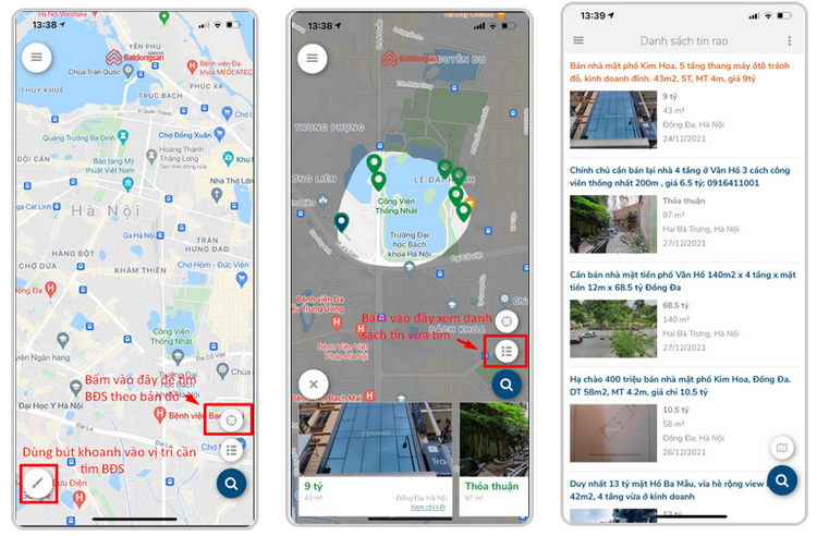 – Cách khác là chọn biểu tượng bút vẽ, khoanh vào khu vực muốn tìm kiếm thông tin bất động sản.