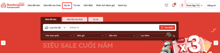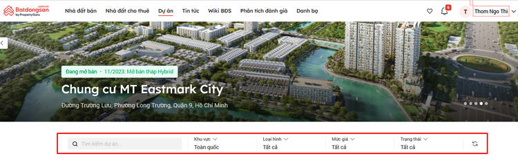 Cách 3: Tìm kiếm bất động sản theo Dự án