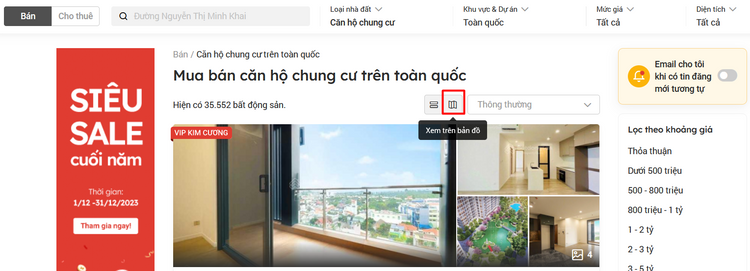 Theo cách này, bạn có thể tìm kiếm chi tiết theo đặc điểm bất động sản mong muốn như: giá, diện tích, hướng nhà, số phòng.