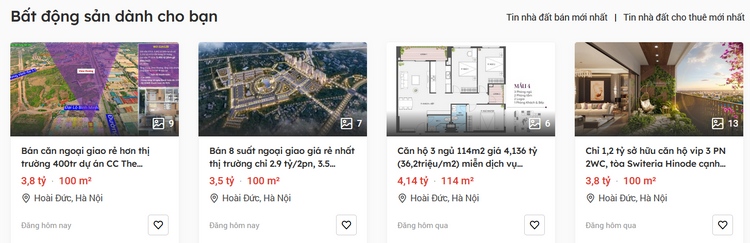 – Xem danh sách tin đăng trong mục Bất động sản dành cho bạn trên trang chủ: Bạn sẽ có thể xem và lọc thêm tin đăng phù hợp với mong muốn tìm kiếm bất động sản của bạn trên website.