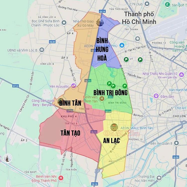 Bản đồ địa giới hành chính quận Bình Tân sau sáp nhập mới nhất năm 2025. Ảnh: okbuy.vn