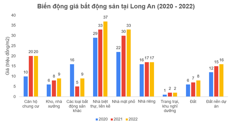 Cùng với các chính sách đầu tư về hạ tầng, chỉnh trang đô thị, cùng vị trí thuận lợi khi giáp danh TP.HCM, những năm gần đây, giá bất động sản tại Long An được đánh giá ổn định và có xu hướng tăng.