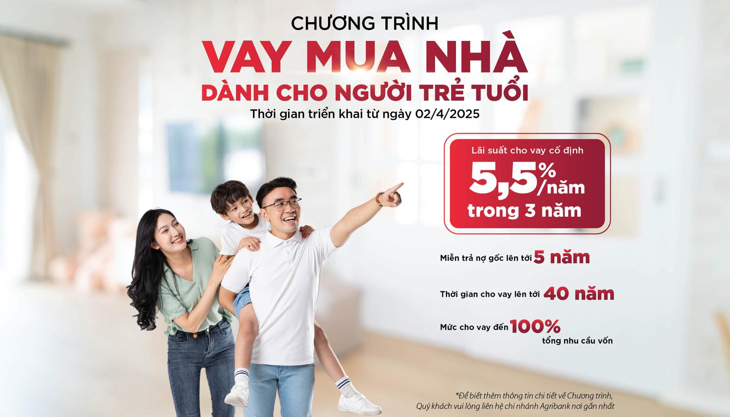 Với vay mua nhà, hiện nay Agribank cũng như các ngân hàng khác đều không áp dụng hình thức cho vay không thế chấp. Tuy nhiên, hiện nay gói vay mua nhà thế chấp với khách hàng trẻ tuổi tại Agribank đang có nhiều ưu đãi như: trong 3 năm đầu, lãi suất cố định 5,5%/năm, miễn trả nợ gốc lên tới 60 tháng đầu tiên. Hạn mức cho vay: 75% nhu cầu vốn khi thế chấp bằng tài sản hình thành từ vốn vay; hoặc 100% nhu cầu vốn nếu khách hàng có tài sản bảo đảm khác.